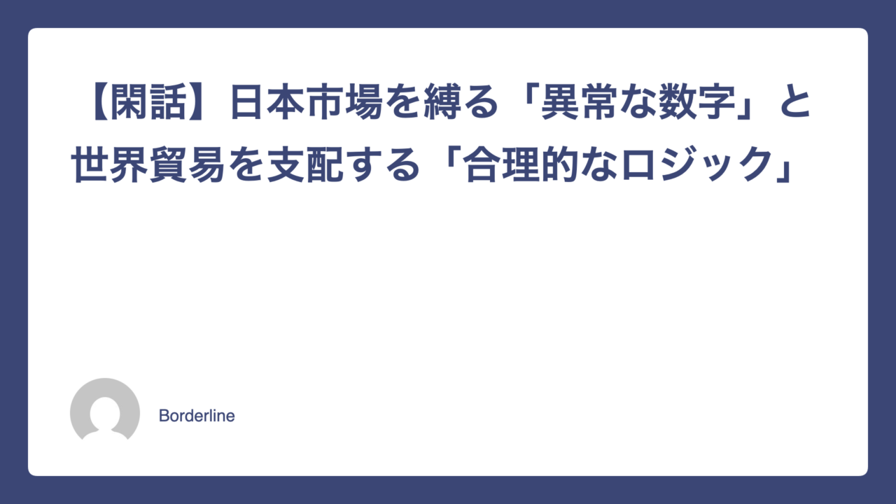【閑話】日本市場を縛る「異常な数字」と世界貿易を支配する「合理的なロジック」
